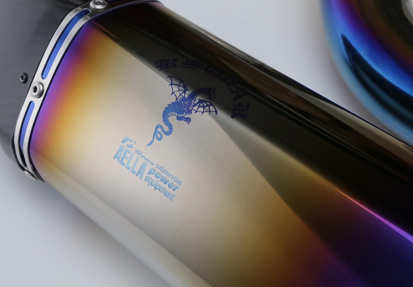 AELLA original muffler produced in collaboration with “Earl’s Gear”. A new design titanium variant silencer is adopted for the silencer, and it is a carbon end only for AELLA. Titanium alloy is used for the muffler material, achieving a weight reduction of 10 kg without a sub-silencer.