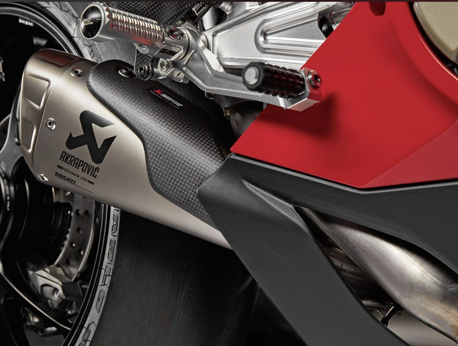 The exhaust, completely in titanium, developed in collaboration with Ducati Corse, reinforces the roar of the Panigale V4. Important investment in terms of torque and power released, also guarantees a reduction in weight compared to the standard exhaust.