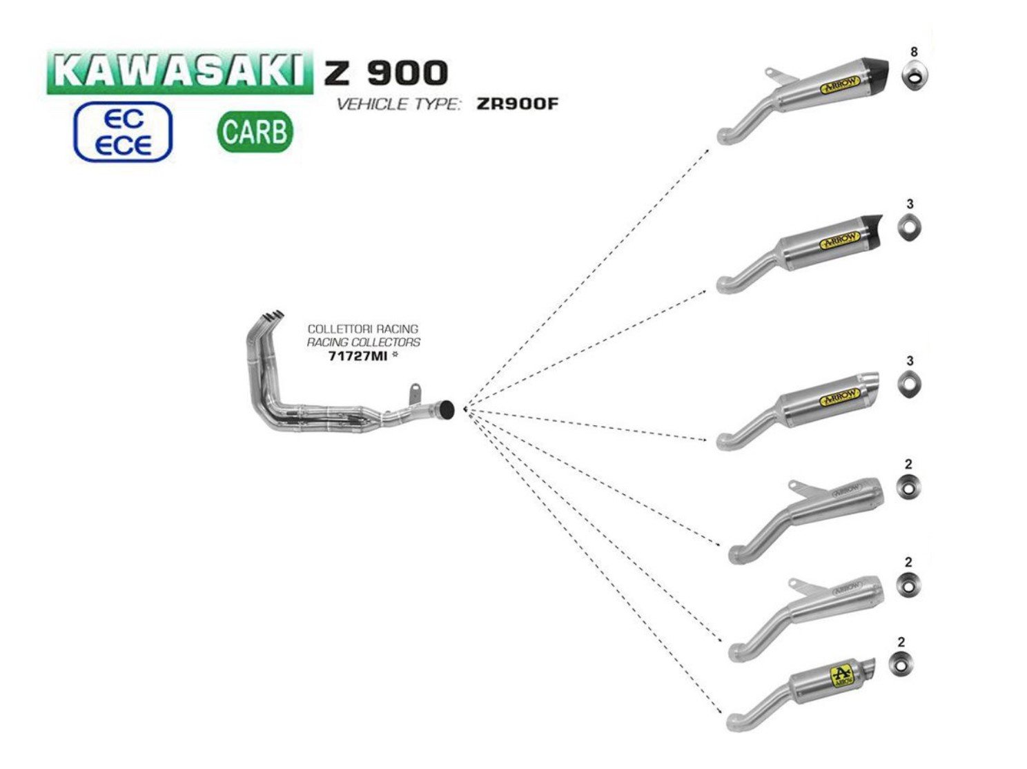 Arrow Headers Racing Stainless Steel For Kawasaki Z900