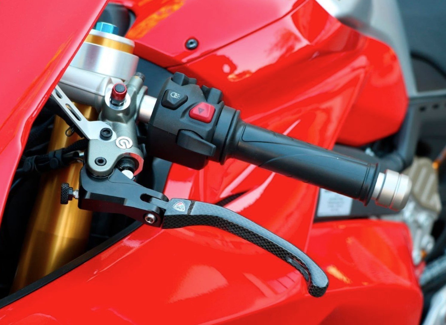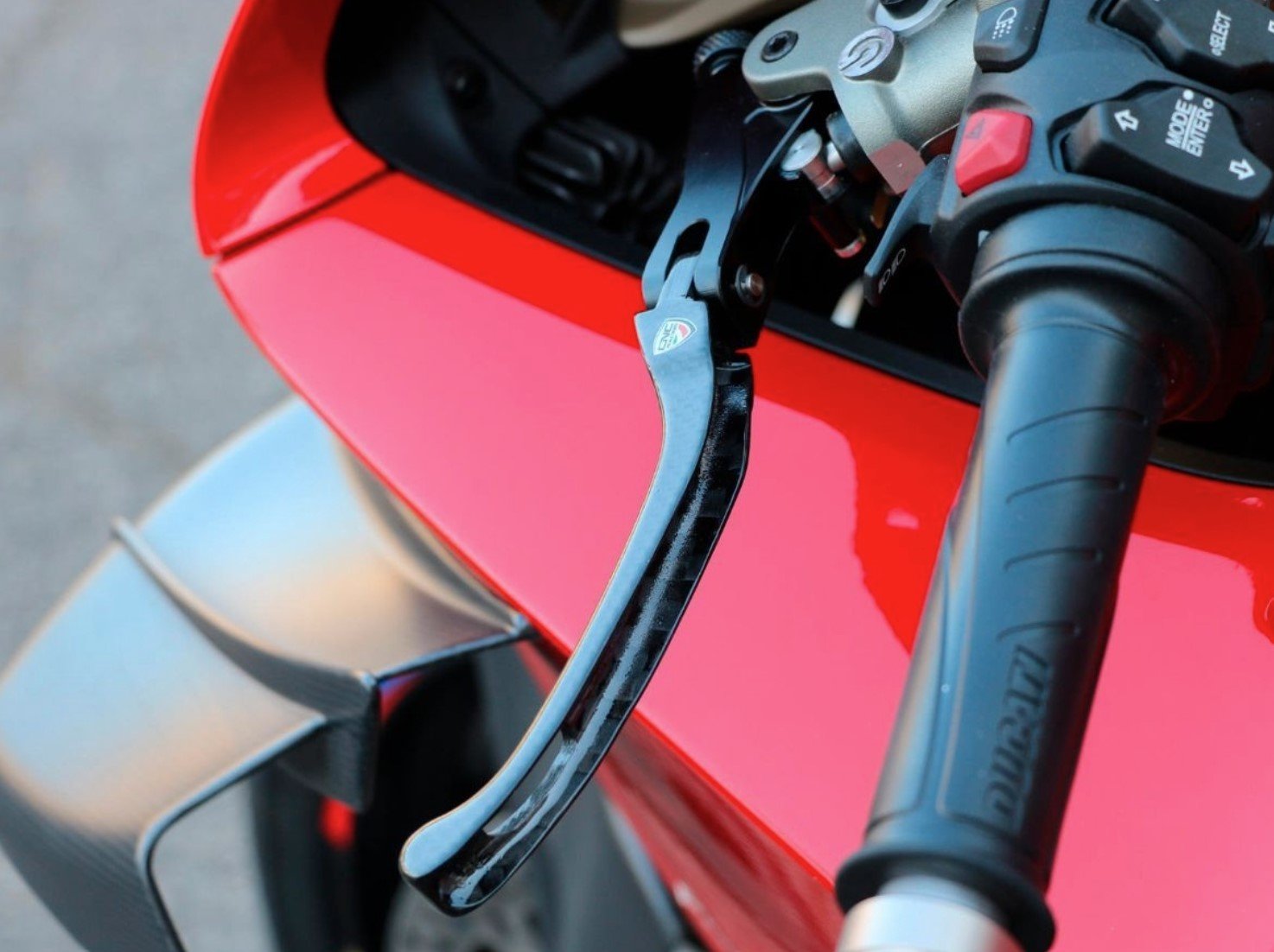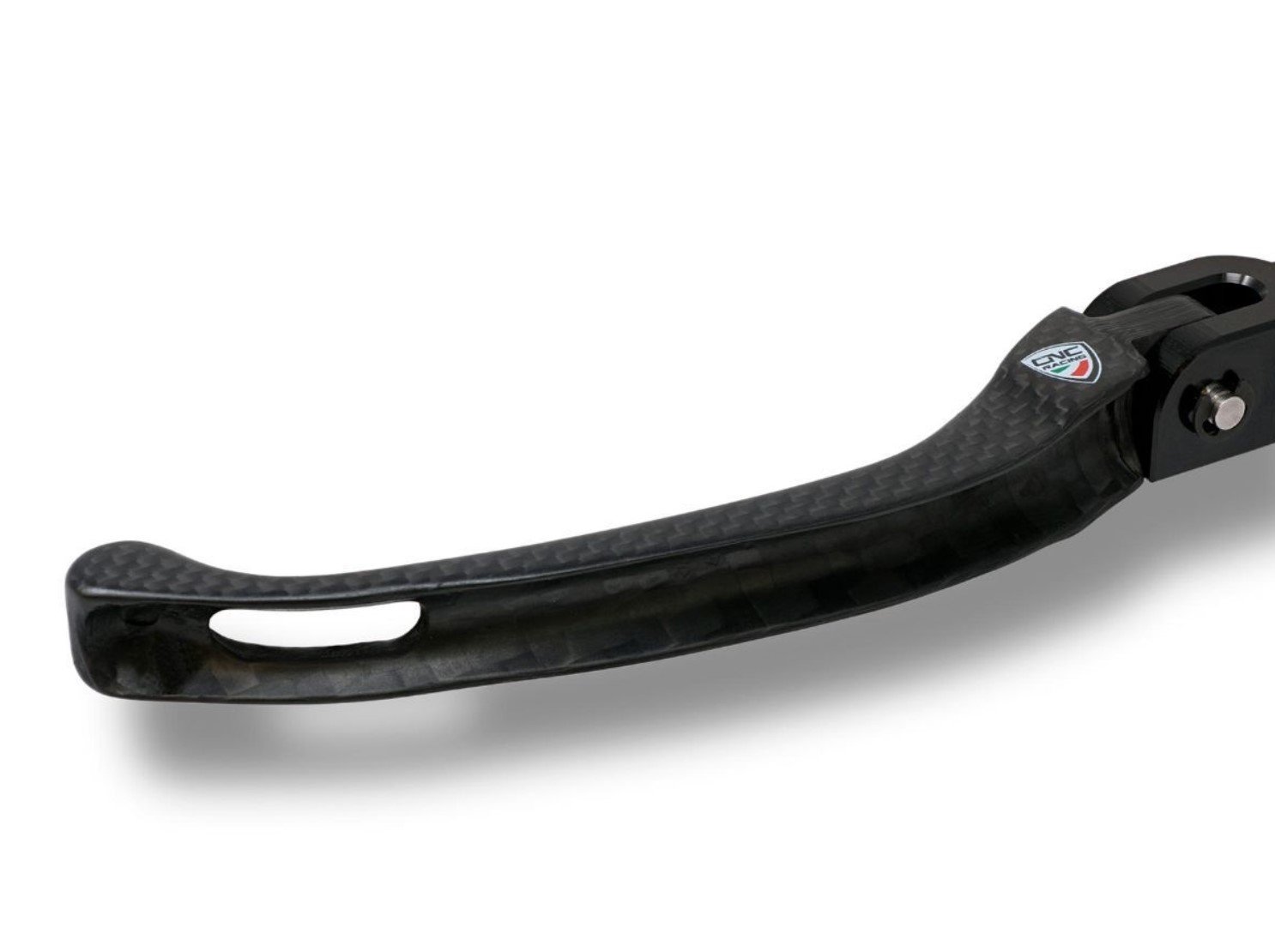 Perfectly compatible with the original clutch master cylinders, the Race Carbon levers have a machined aluminum attachment with subsequent anodization of the surface and steel screws, while the articulated lever is entirely made of carbon fiber.