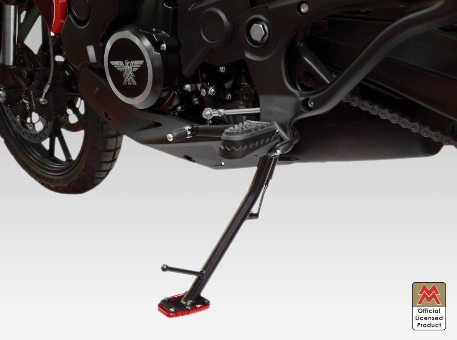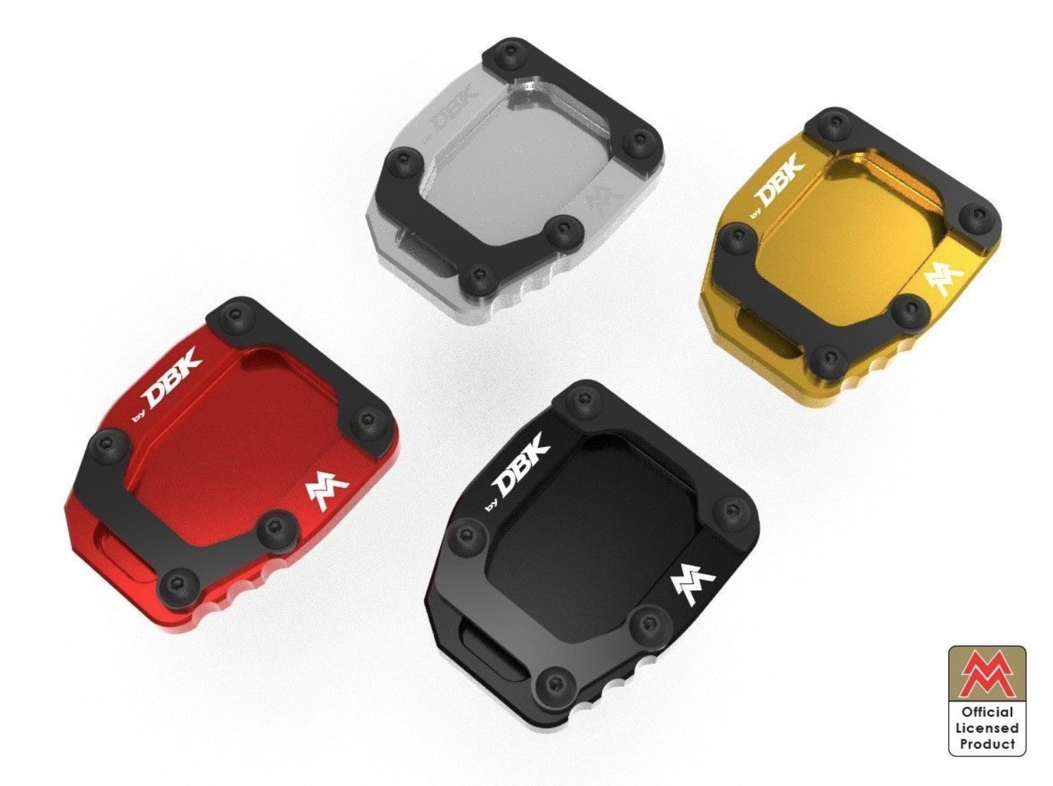In aluminum and steel machined from solid, with subsequent colored surface anodization treatment.Ā Increased support base, serves to make the support of the motorbike safer when parked.Ā Plug and play