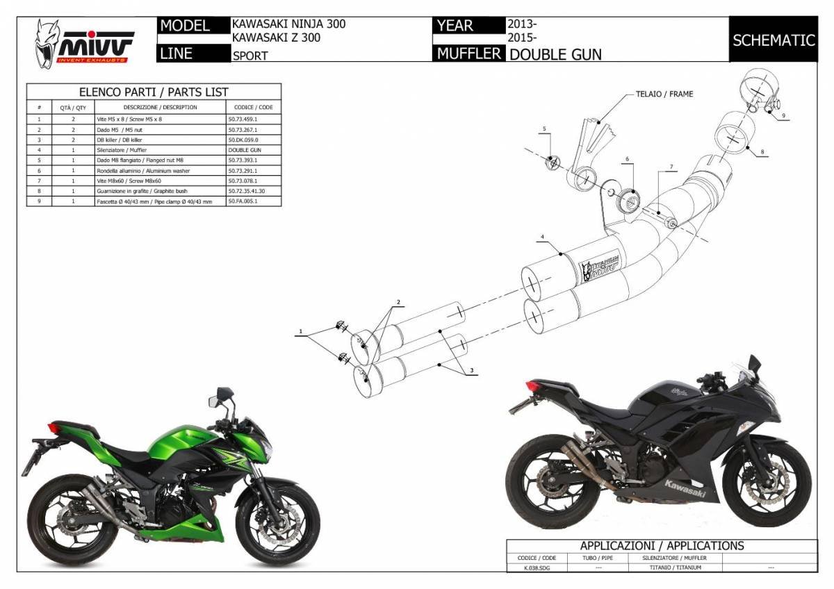 HomeExhausts Mivv Double Gun Titanium Exhaust Slip On Kawasaki Ninja 300