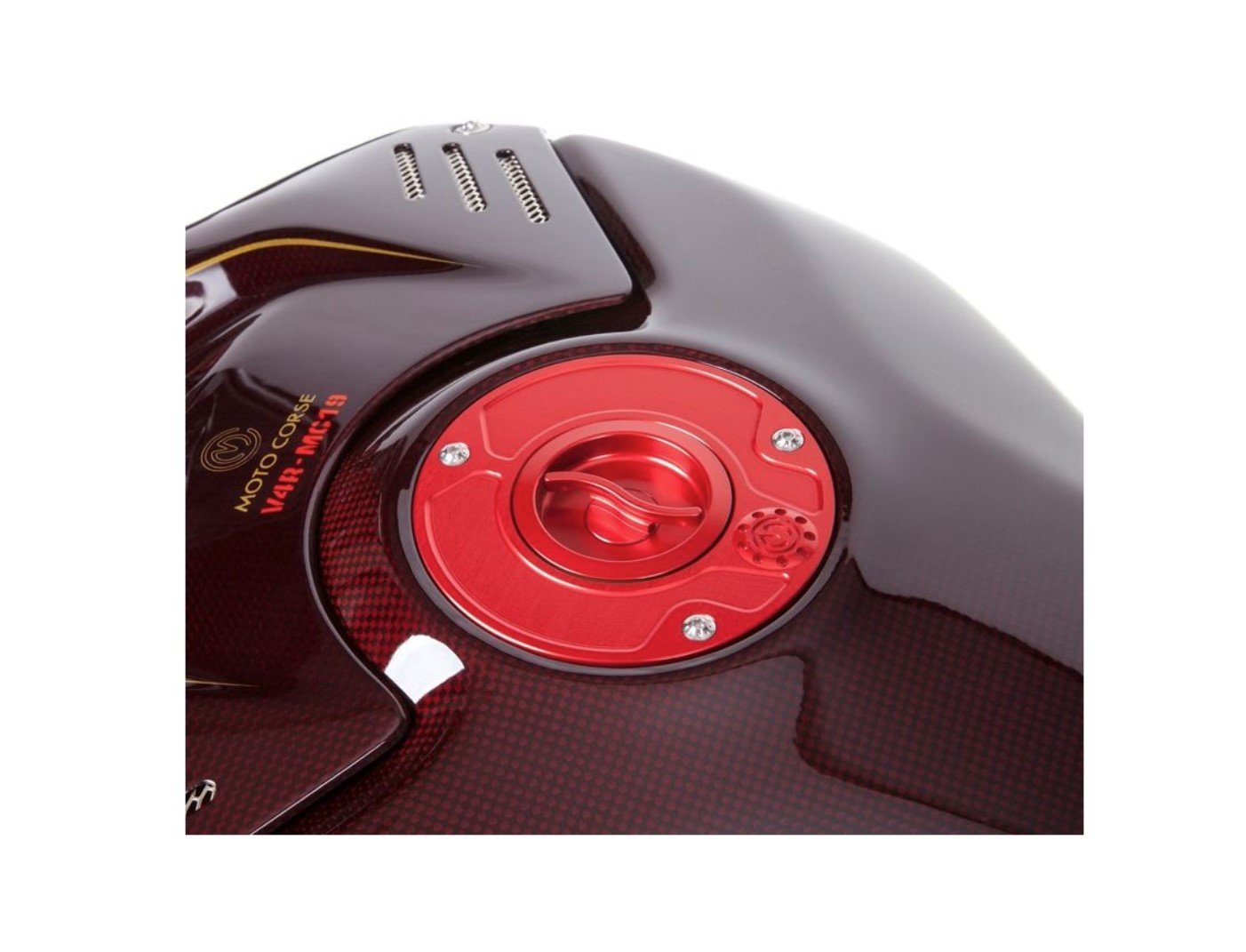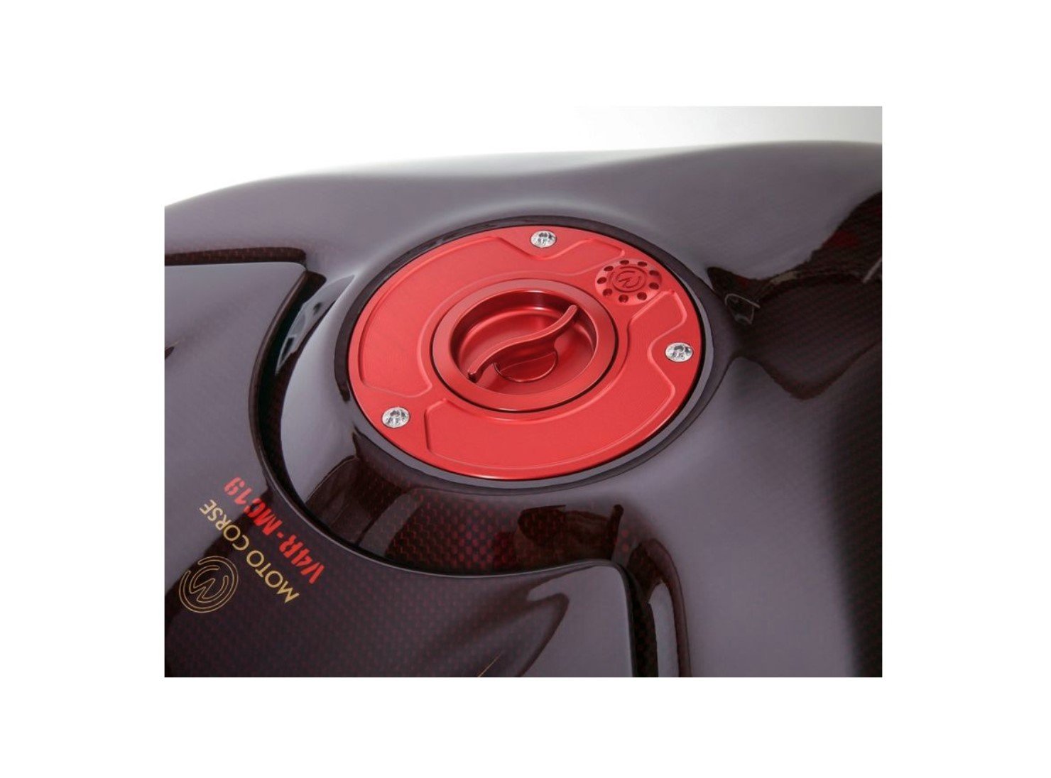 Motocorse tank plug is made of aluminium alloy (Ergal) and constructed through the use of CNC machines.Ā The finish is obtained by anodic oxidation in 4 different colors: Silver, Black, Gold, Red.Ā Perfect substitute for the original one,Ā Motocorse tank plugĀ is 50% lighter.