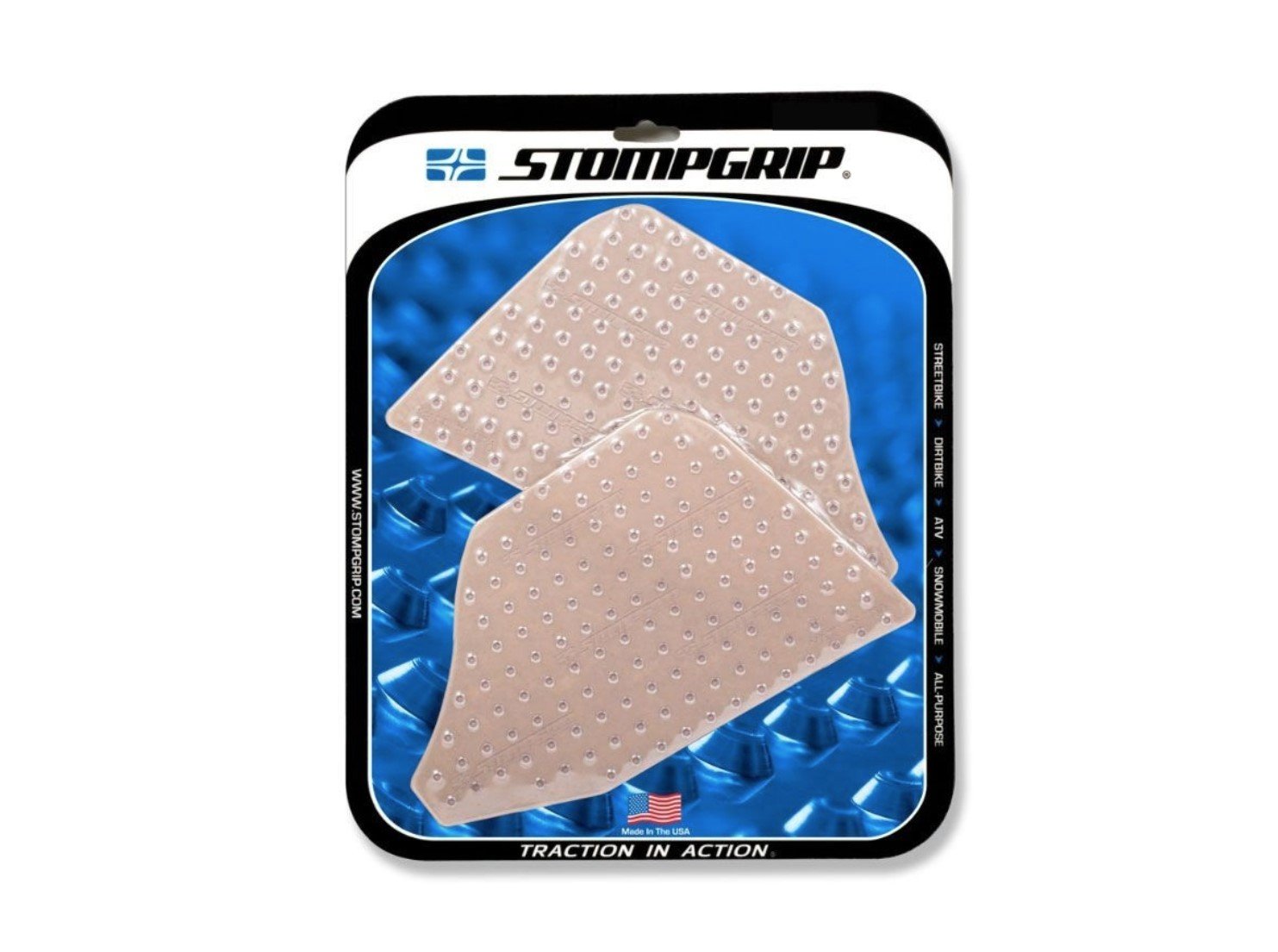 Pre-formed stickers for all road and off-road motorcycles that improve grip on the tank, helping the body in both braking and cornering situations, without damaging the graphics of the bike that remain, in the transparent version, however visible. Stompgrip anti-slip grips are used by the best MotoGP and Superbike teams.