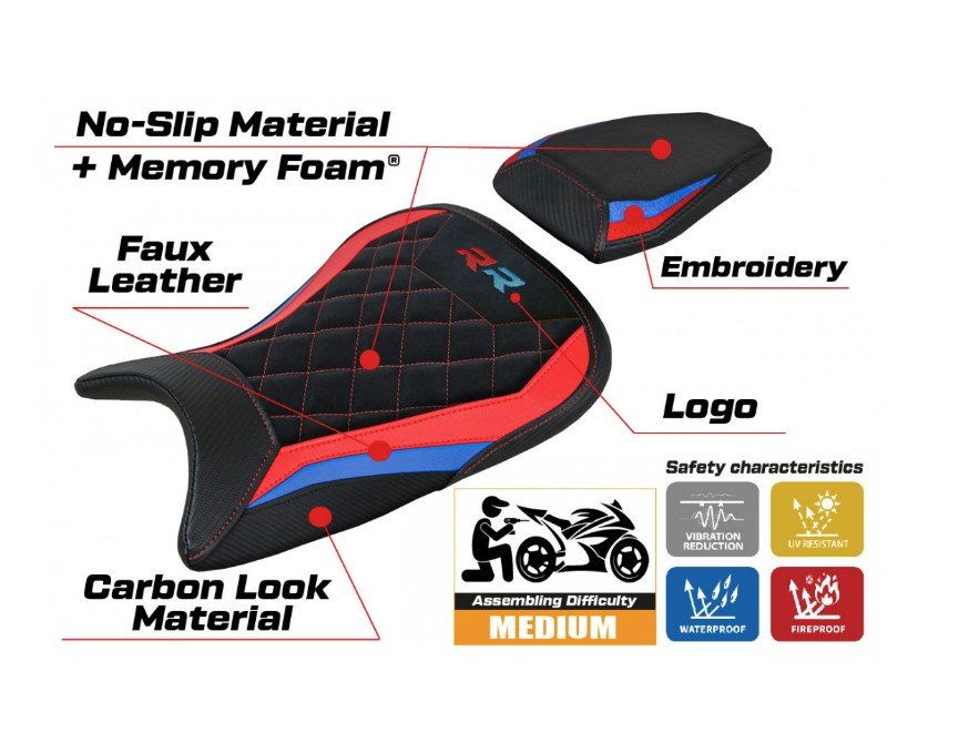 This cover is combined on the inside with a special memory foamĀ latex sponge, which gives more comfort to the saddle.Ā Waterproof* and resistant at atmospheric agents.Ā Reinforced with double stitching,Ā high resistance to chemical agents.Ā We deliver the detailedĀ instructions manual for assembly.Ā However, we recommend installationĀ by qualified personnel.