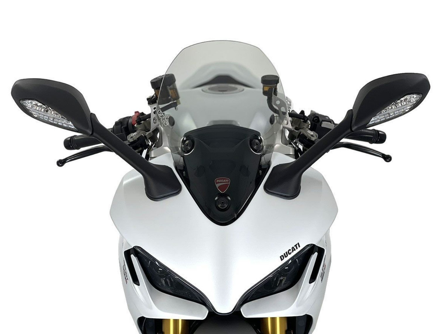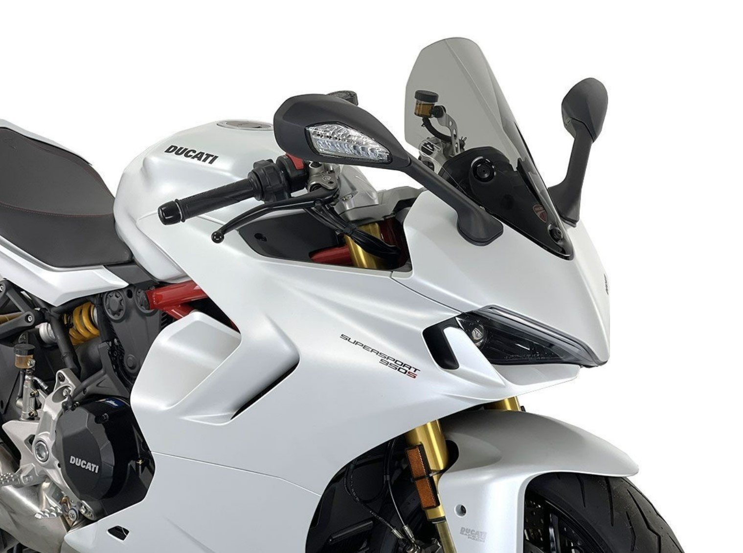 Windscreen made using high quality PMMA plexiglass, DOT626 approved 3mm thick. Made following the strictest standards in terms of safety and respecting the know-how, which guarantees maximum resistance and transparency.Ā Sport version, smaller than the original windscreen.Ā The aerodynamic lines of this windscreen have been studied in detail to reduce air friction to a minimum, offering the rider greater driving comfort. For those who want greater coverage from the air we recommend our other version Touring.Ā The small size and sporty lines of this windshield give the bike an even more captivating appearance.Ā Compared to the original windscreen, this Sport version of ours is 6.5cm taller and 5cm narrower.
