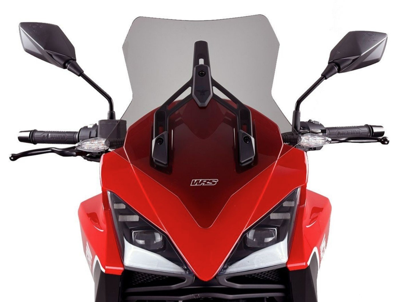 Windscreen made using high quality PMMA plexiglass, DOT626 approved 4mm thick. Thanks to this windscreen the annoying turbulence on the helmet will be eliminated, as well as the air on the shoulders and you will finally be protected even for longer journeys.Ā Ideal for use in hot weather or for short trips around the city.Ā Sport version with measurement 6cm lower than the original and 6cm per side.Ā The design, studied in detail, fits perfectly with the lines of the bike.Ā More specifically, we have improved the lines of the windshield so that the airflow flows directly onto the deflectors without compromising driving comfort.